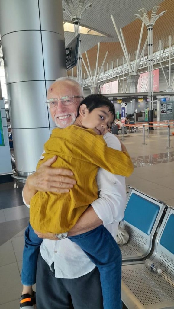 Andi and the family met me at the airport, and the older kid, the little Terence, whom I haven’t seen for over 3 years, came bounding up and hugged furiously. The second one, the 3 1/2 year old bounded up for another hug, but when I gave Camellia, Andi’s wife, a hug, the new little toddler she was holding got a fright and started wailing.