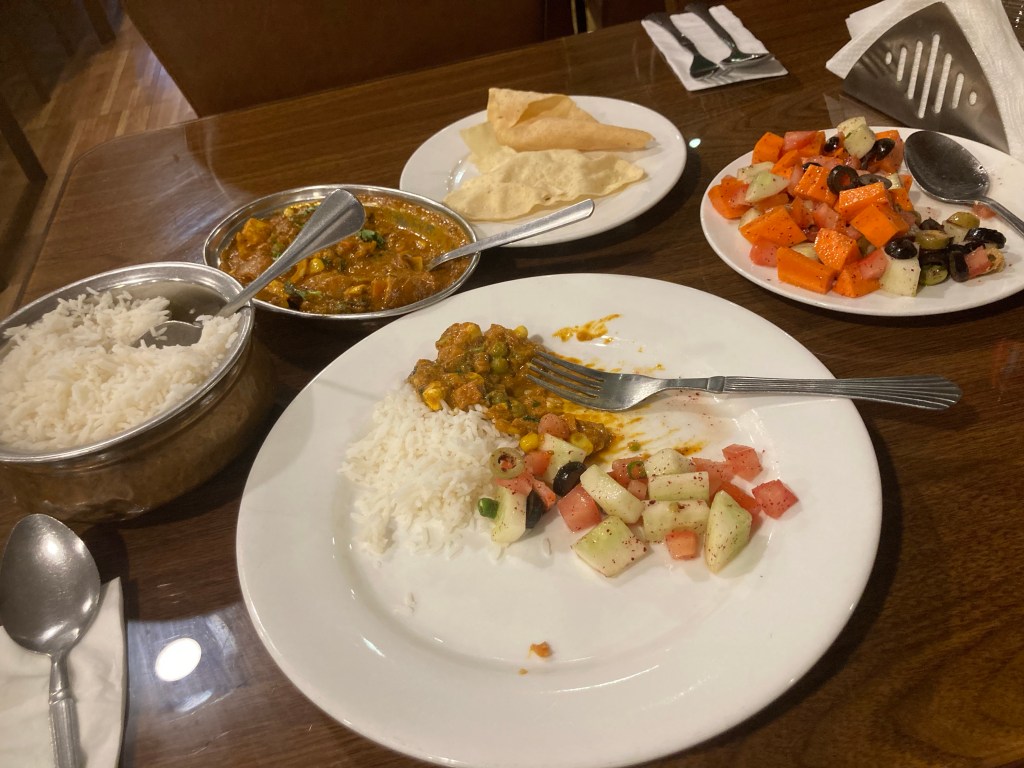 For dinner at night I’ve been to an Indian joint next door to the breakfast place. After two visits the waiters were all on for a chat…and an extra service as well…see below.