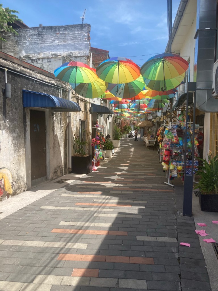 I took a side trip to Georgetown on the island of Penang. It took a fast train journey of 4+hours, cruising at 140+km/jam (jam is the local word for hour) through jungle and small villages.