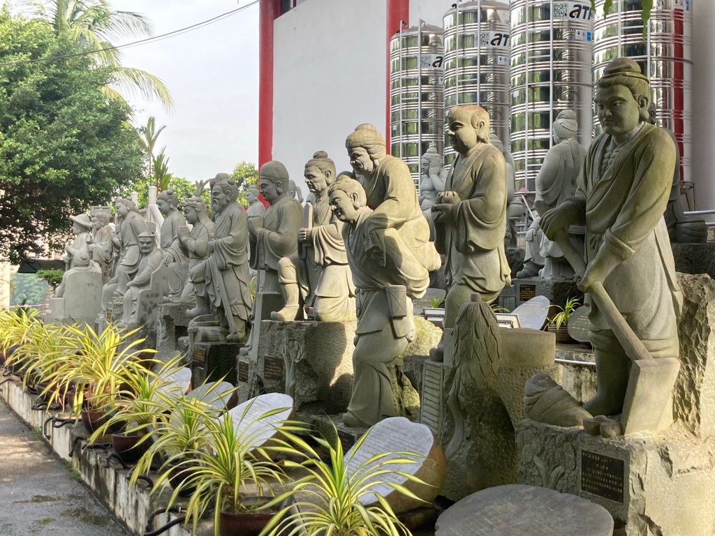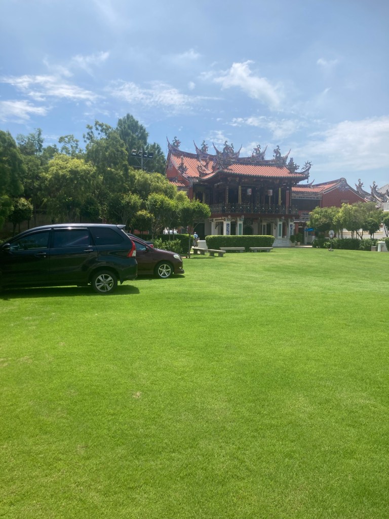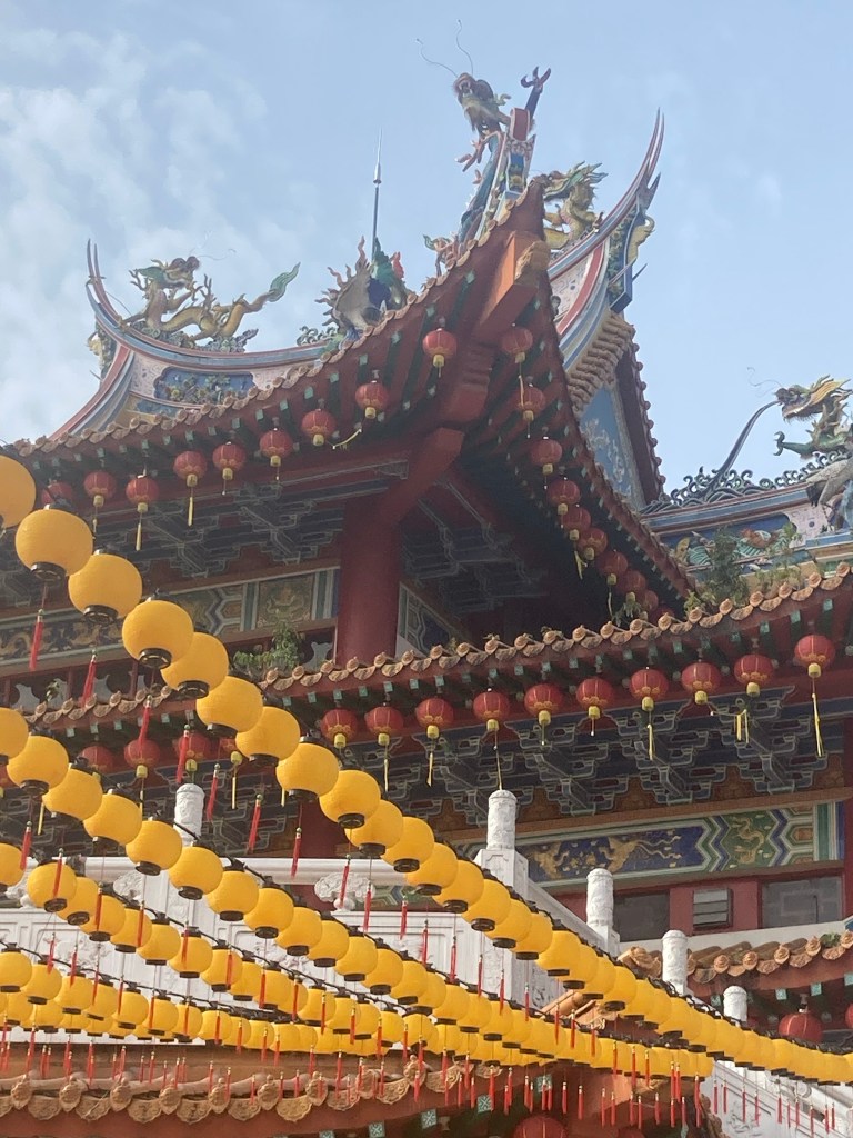 I went to a splendid Chinese temple, the Thean Hou temple, just a km or so from the central station. It’s on the top of a hill, surrounded by jungle and bathed in the sounds of birds, supported by the dull roar of the traffic on the nearby freeways. With a little imagination one could self delude into thinking it was the distant ocean.