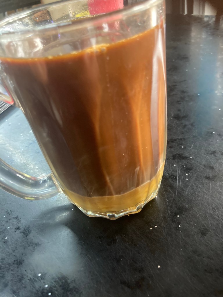 …and orange juice and very sweet coffee. You can see in this pic the layer of condensed milk that has yet to be stirred in…
