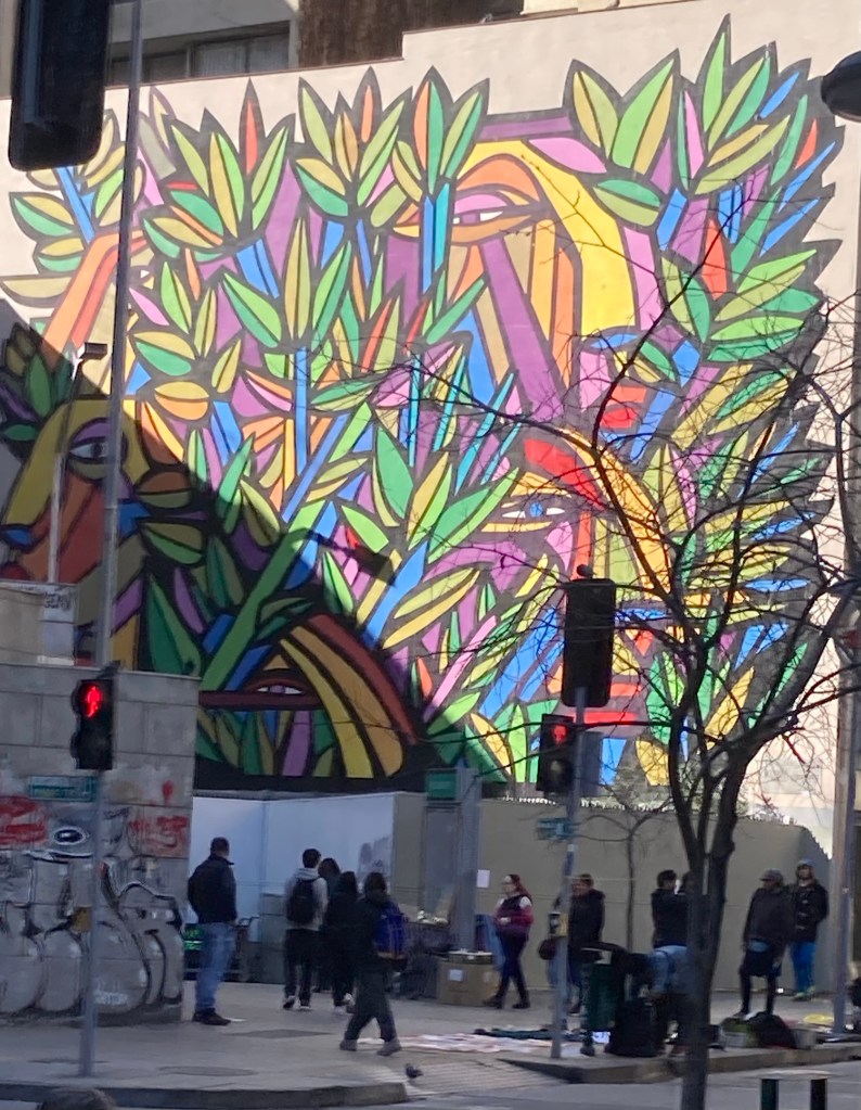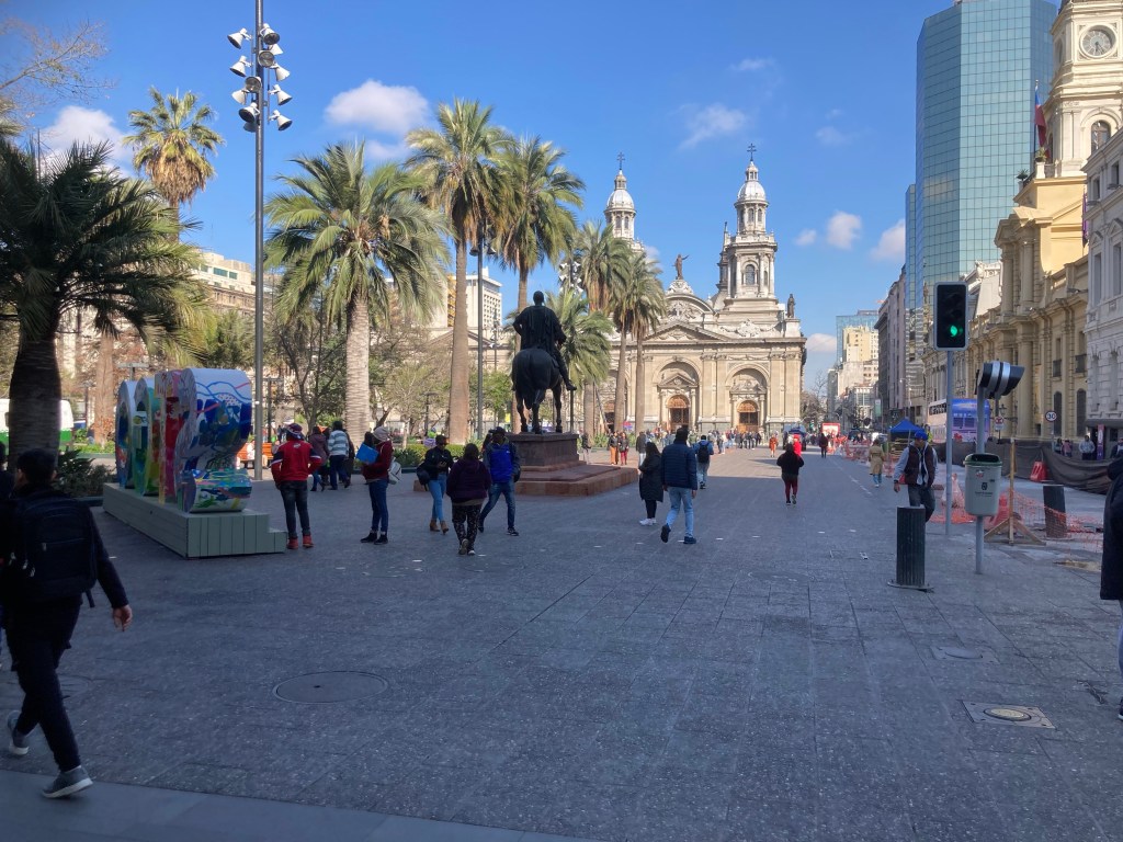 There was lots of rain up to the day of my arrival, so I got fairly wet navigating my way from the airport to the Airbnb I had booked, a few hundred metres from the Plaza de Armas. But since then it has been splendid weather, much the same as Kerang’s. This is not all that surprising as both places are on the same parallel of latitude, although Kerang is 79 meters above sea level while Santiago is 520 metres and has the massive Andes behind it.