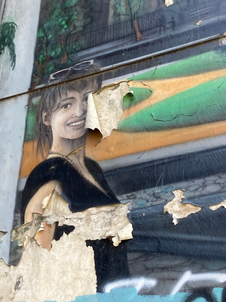 This street art caught my eye as I was walking to the museum. The peeling is unintentional I suppose, but it does make a statement about the impermanence of many aspects of existence, and the need to ‘gather rosebuds while we may’.