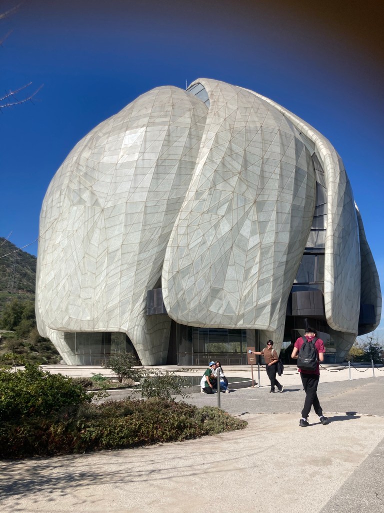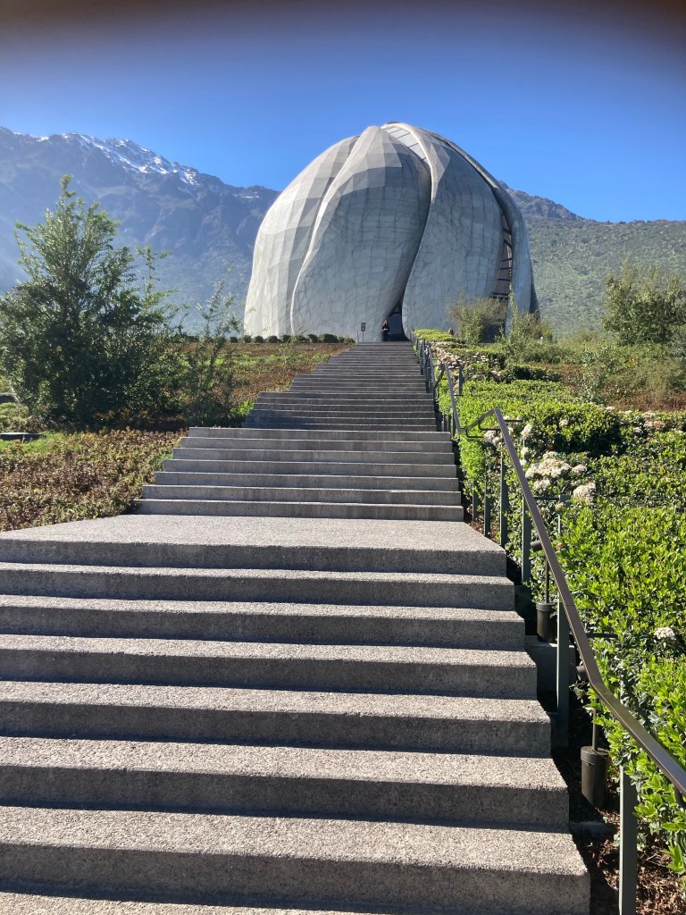 On Friday I used it for a trip out to the Baha’i Temple which nestles halfway up the foothills of the Andes, about an hour from the centre of town. There is a half hour walk up an at times steepish road to get to it, although you could drive or take a taxi. I was pleased that I had trained multiple times on the 7 flights at my accommodation.