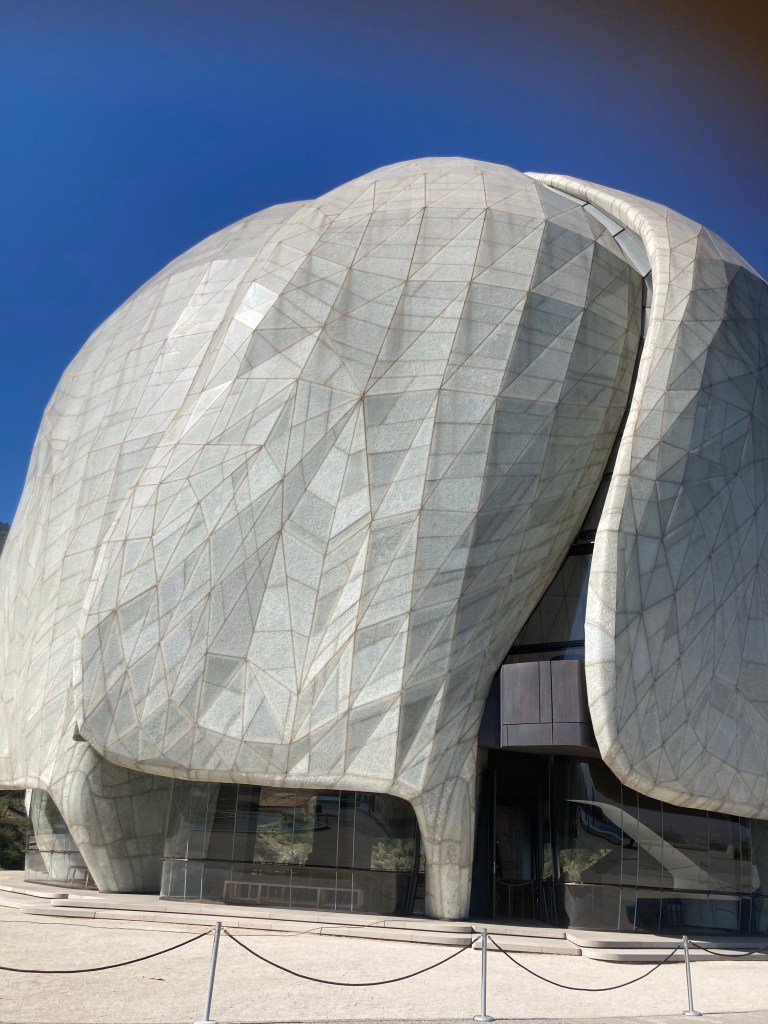 You aren’t allowed to take pics inside, but it is a most serene and light filled place, the translucent ceiling swirling upwards, and the space surrounded by glass at floor level looking out to the gardens. The air is cool and crisp and clean.